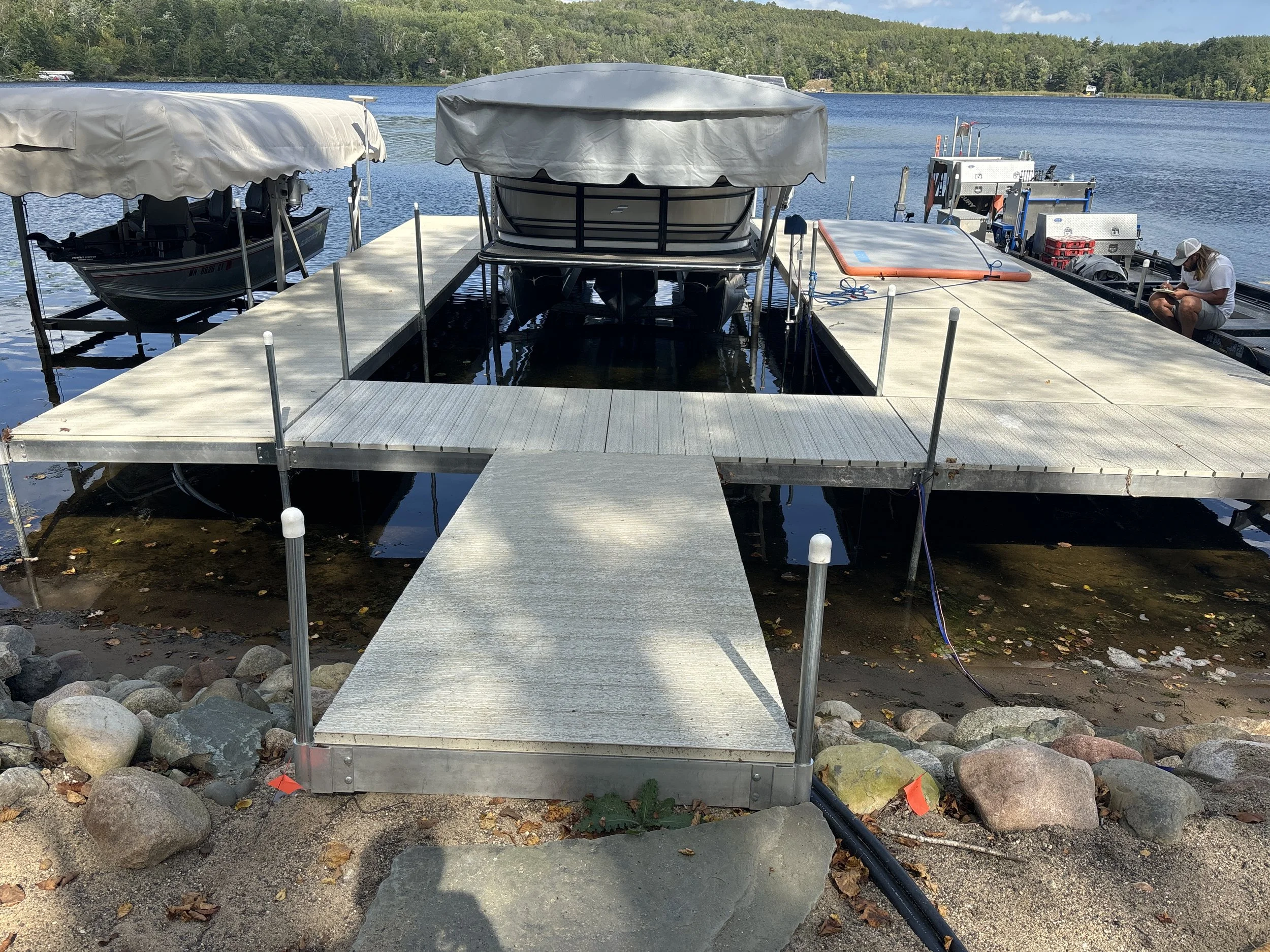 We are a Waterfront Dock dealer. Waterfront Docks are the standard in the Brainerd Lakes Area for quality and craftsmanship. We exclusively sell their dock. Waterfront has a fully aluminum frame with removable panels. Sections vary from 5-12 feet long and can be converted to almost any layout for your waterfront needs. Sections take up minimal space when stacked on shoreline for winter. Please contact us for a free quote on your next dock purchase.
